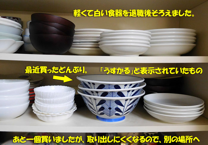 だんだんと手首の力がなくなってくると思って、退職後、洋皿類を少し軽い真っ白なものに替えていた のですが、 うどんの丼とラーメン用の丼が重かった