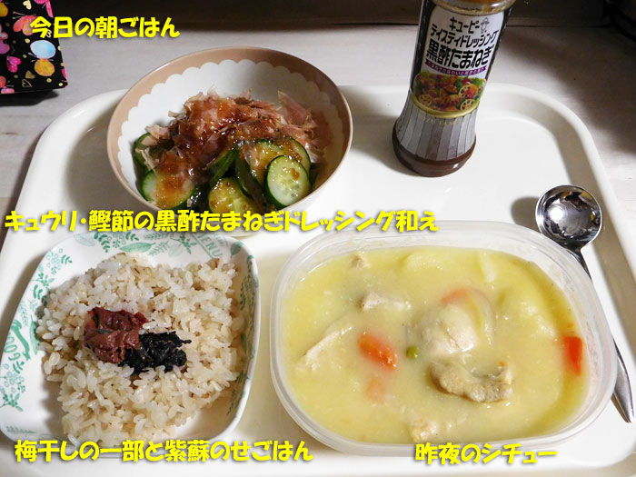 というわけで、今朝の私の朝ごはんは、シチューセット。