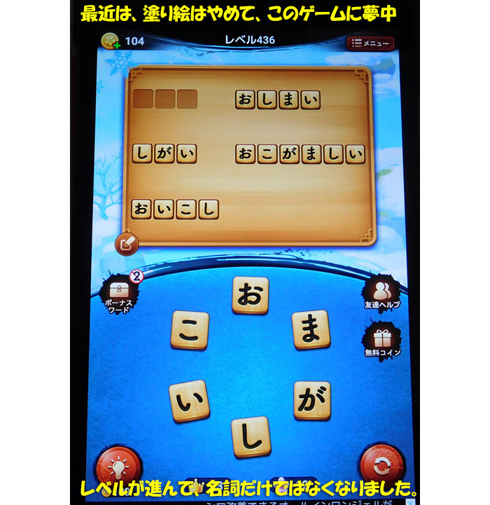 最近は塗り絵はやめて、言葉遊びを中心にやっています。