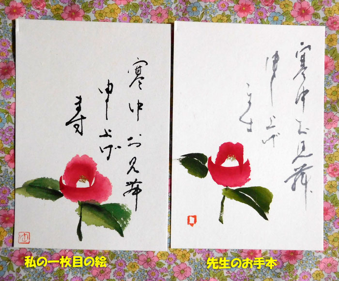 一枚目、なんか、にじんでしまいました。そして、葉っぱが小さくなったので「ずる」をして、あとで少し描き足しました。