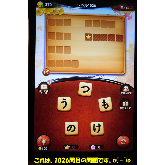 あっという間に、1000問を突破し、今は1026問目。これの五文字の言葉を考え中。