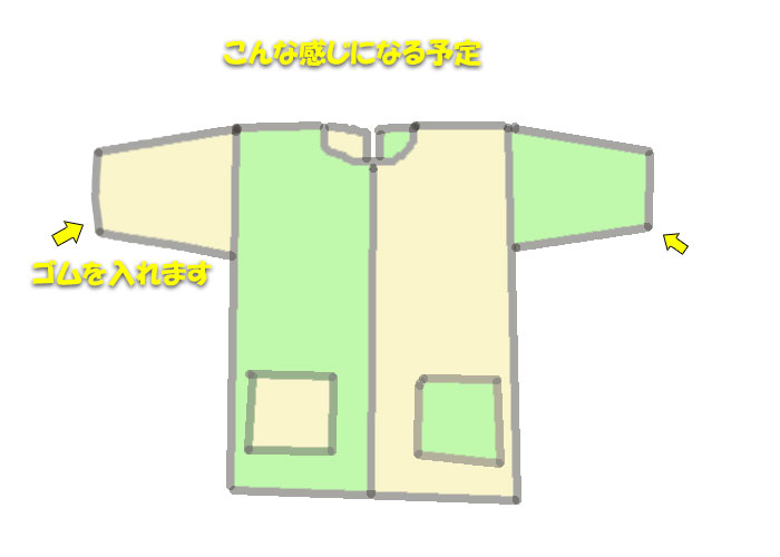 昨日思いついて、型紙を作り、裁断までしていたかっぽう着。