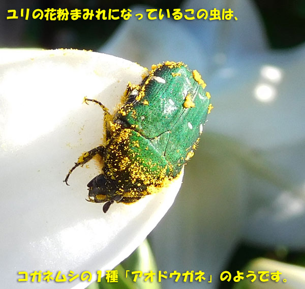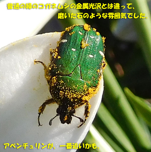 普通のカナブンとかコガネムシの金属光沢とはちょっと違う、きれいな色。