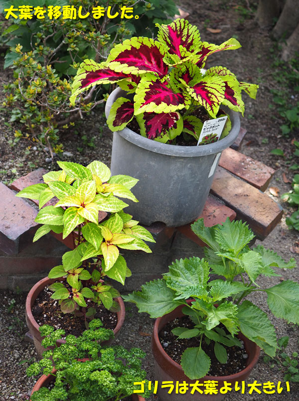 この場所の方が木漏れ日が当たる程度なので、大葉にも良いのかもしれません。
