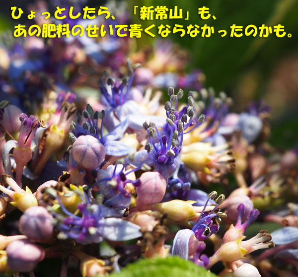私は「新常山」にも「青アジサイの肥料」をたっぷり上げていたのです。あんまり青くないのは、そのせいなのかな?
