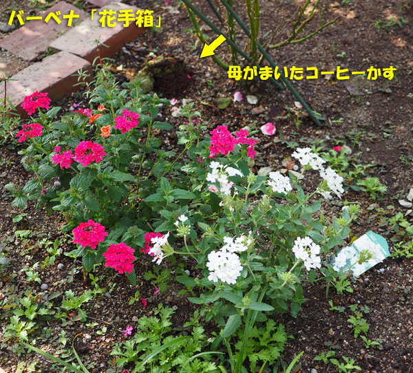おまけ。母は、お茶がらやコーヒーを淹れたあとのコーヒーがらをとっておいて、1週間に一度くらい庭にまいています。たいてい、バラの根元ですね。