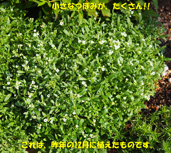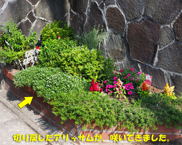 思い切って半分くらいに切り戻していたアリッサムが、新しい葉を出して、花も咲かせてきました。
