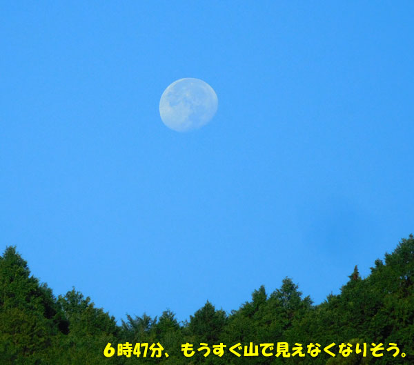 しばらく水やりとか草取りをして、ふと見ると、山の方に隠れそうになっていました。