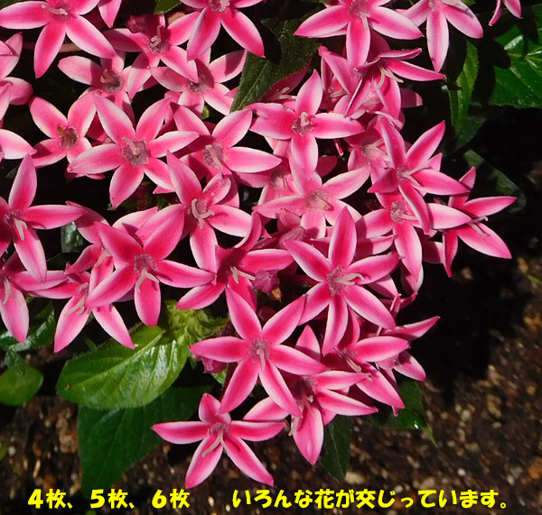 」というくらいだから、5枚花びらの花のはずですが、6枚の花がとても多いです。中には4枚の花も。