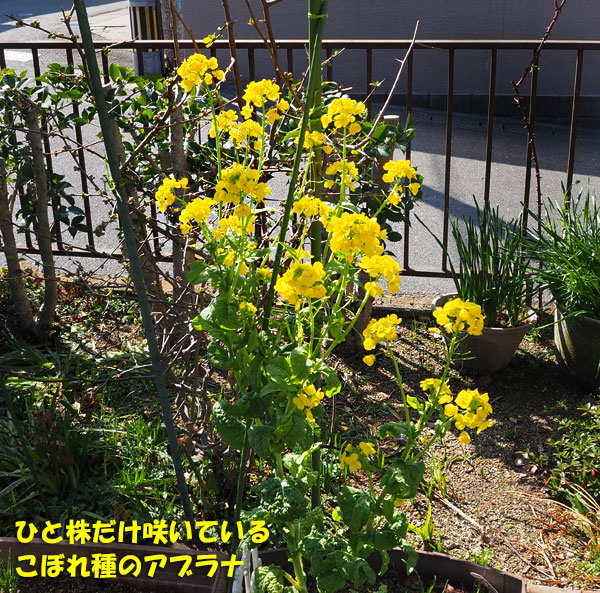 たったひと株のアブラナは、どんどん花が増えてきて、存在感抜群!!
