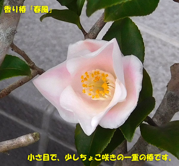 同じ香り椿の「港の春」よりも、上品な雰囲気です。