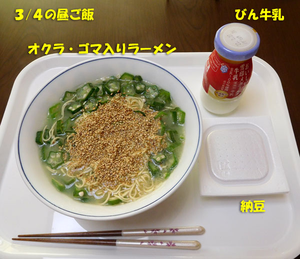 これは、昨日の昼過ぎに食べたオクラ・ゴマ入りラーメン。