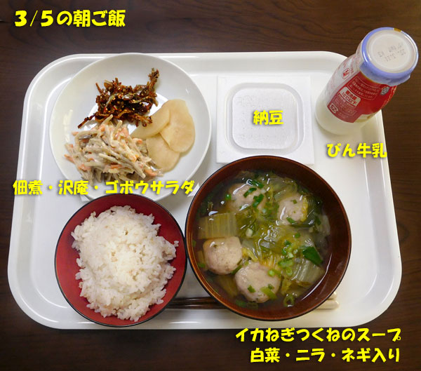 つみれのスープは、昨夜の晩御飯のおかずです。