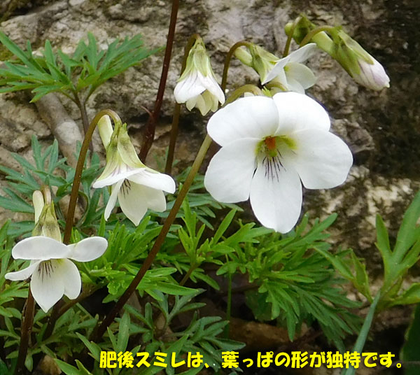花びらが、他のスミレより少しぶ厚くて、葉が菊みたいです。