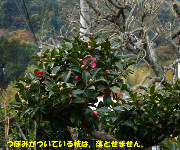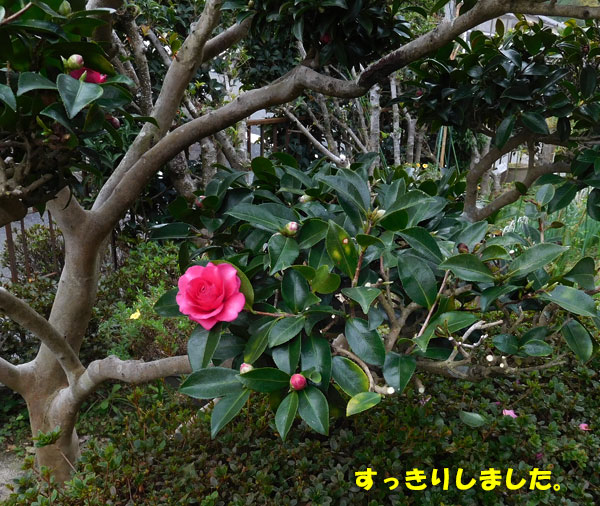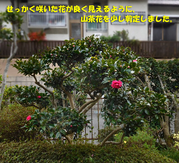 この山茶花は、庭師さんによって、なんか芸術的な枝ぶりにされていたので、