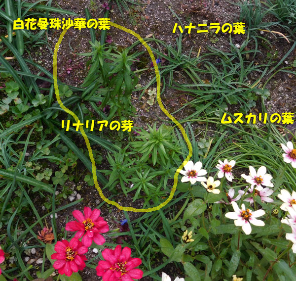 とにかく、真ん中の花壇には、たくさんの球根が埋もれているし、