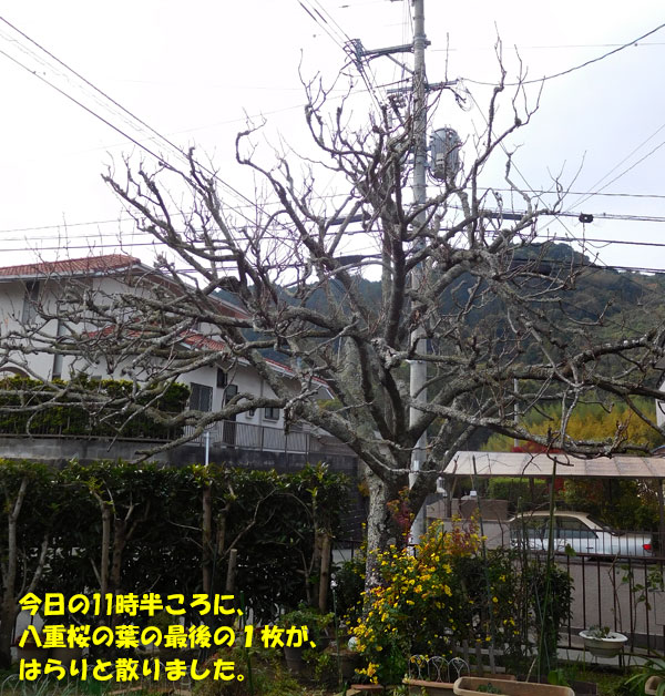 キレイな葉っぱを、毎日散らして見せてくれていた八重桜ですが、