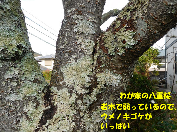 今日は、我が家の老木八重桜の寿命を延ばそう大作戦の一番目。