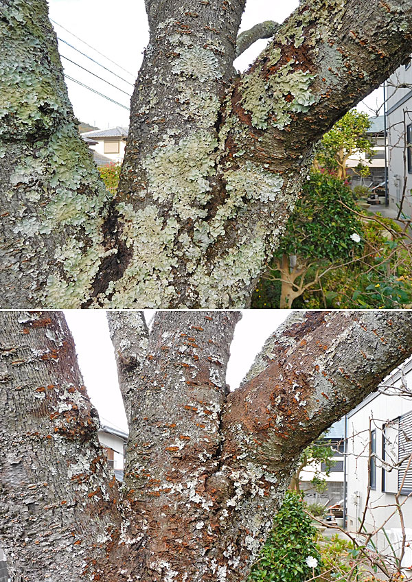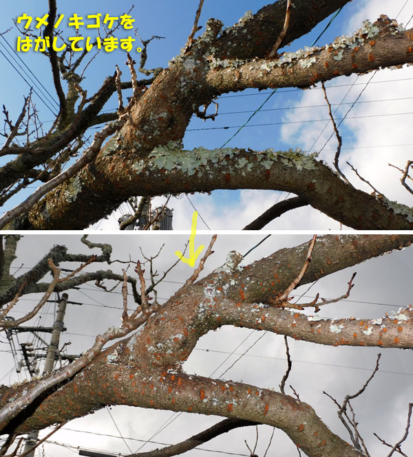 完全に剥がすと、木自体を傷めそうなので、このくらい。