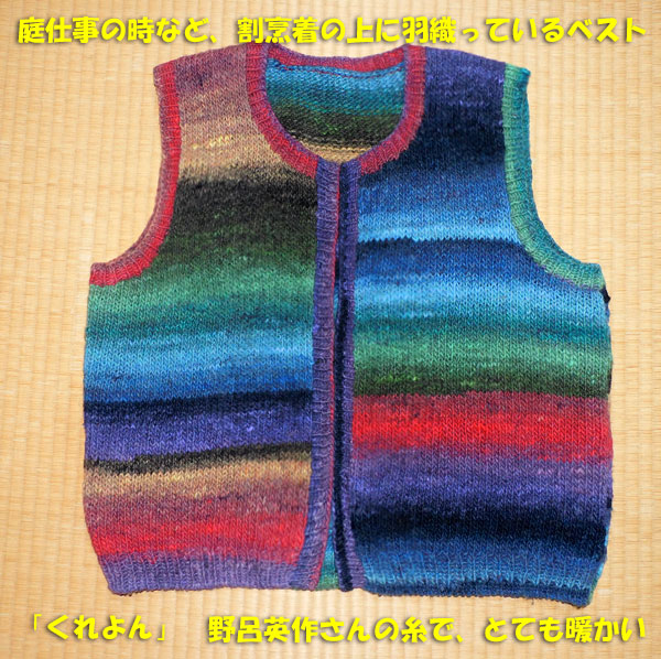 では、庭に出たり、台所仕事をしたりするときに羽織っているベストね。