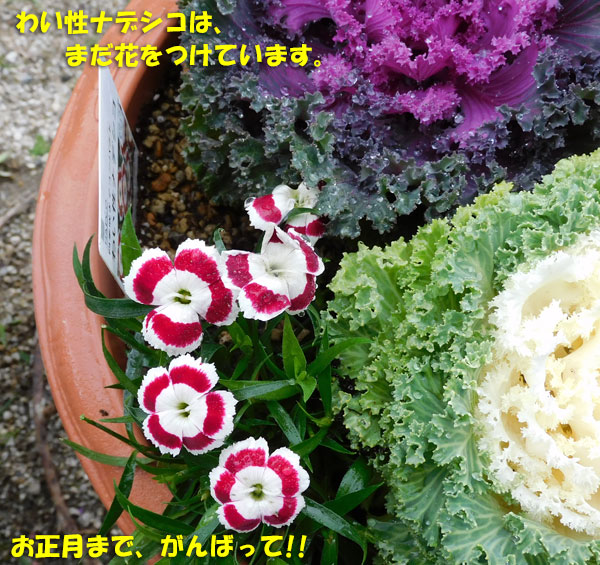 お正月用に植えた「矮性ナデシコ」は、今のところ咲いていますけど、
