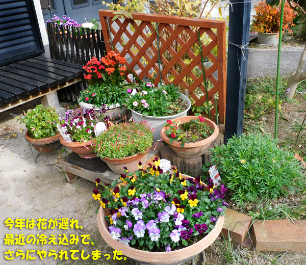 矮性ナデシコも、花はついているけれど、ちょっと元気がないなぁ。