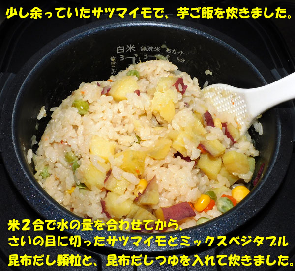 ふかし芋を作ったときに、入りきれなかった分を残していたので、
