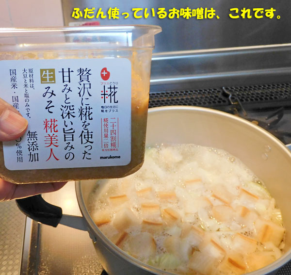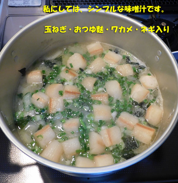 いつもは、もっといろいろ入れて「具沢山味噌汁」にしてしまいますが、