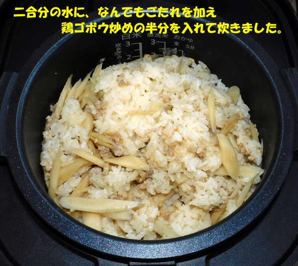 ついでに、鶏ゴボウ炊き込みご飯を作りましたよ。