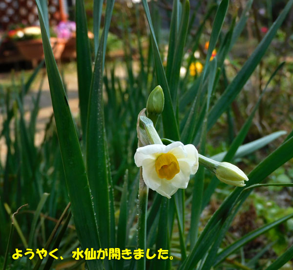 早い時は、暮れのうちから咲き始める水仙ですが、