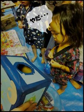 ヾ(●´ω`●)こんばんはぁ♪今日入荷のこのコ気になってましたヾ( o´∀)ツオレンジに一目惚れ!!taiチャンに100サイズヾ(●ω●)ノ楽しみだぁ~昨日のハナシ・・・園のお祭りに行ってきました♪yuチャンは園のお友達と会えるのでウキウキ~taiチャンはなんだかやる気なし。。(←意味不明)【あてもの】先生が『taiチャン~お手手入れて取って~♪』と言ってもムスッ!!!完全に無言。そしたら姉が参上!!!『だいじょうぶやからなッ!!!』っとyuチャン。(←なにが?)【一円玉落とし】何の迷いもなくポイッ・・・・はい。終了。もちろん入ってません。ここでも終始無言。【ポップコーン】先生に『taiチャンど~ぞ♪』って言われプイッ・・・・なんでやねん!!!って何回突っ込んだことか。汗そんな感じでお祭りはあっさり終わりました。yuチャンはお友達と別行動♪すっごく盛り上がってました☆来年はどんな祭りになるのかなぁ~