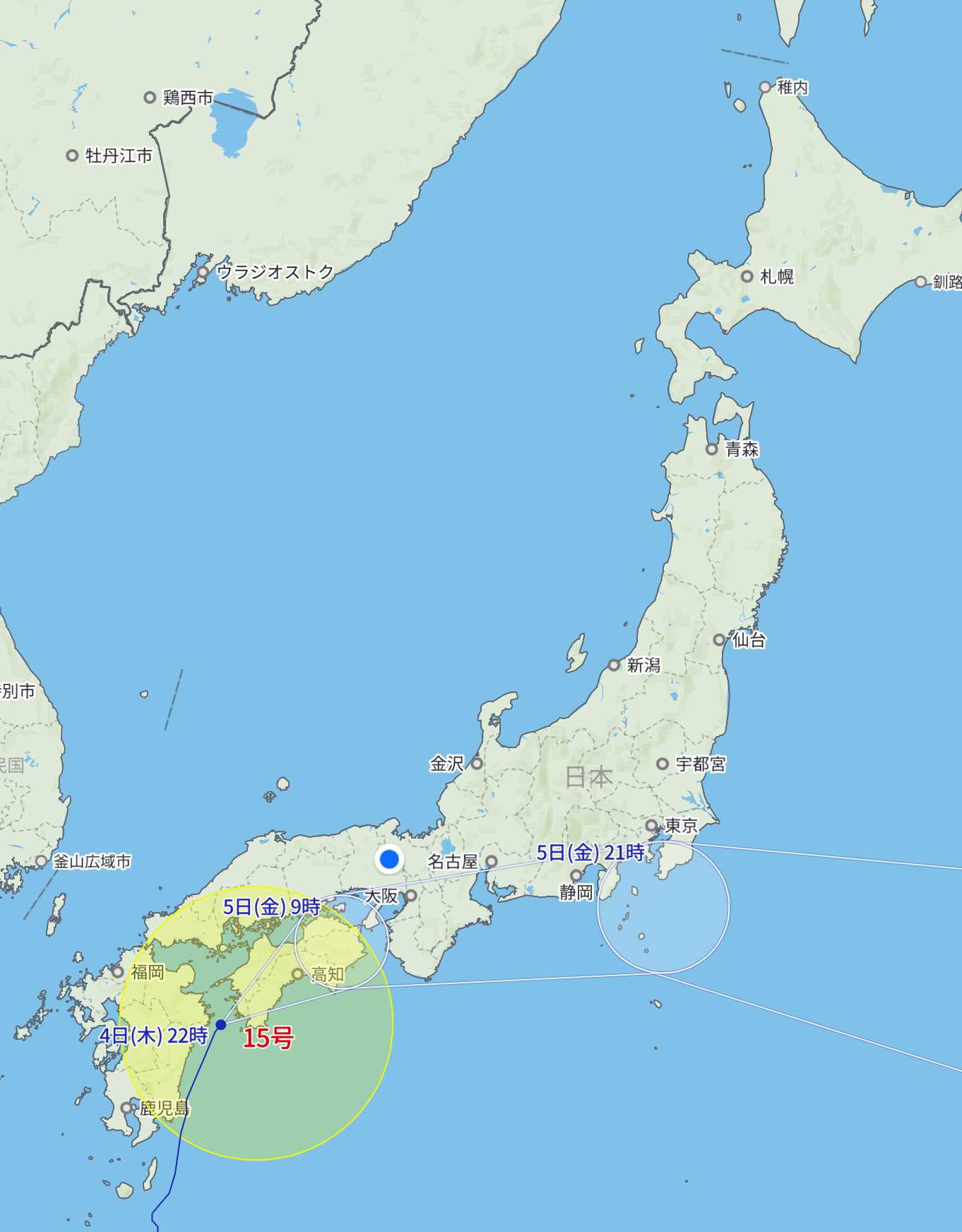 明日の午前中に一番近くなるようです