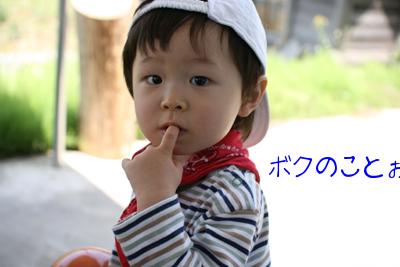 ボクが生まれて・・・パパが慣れない習字で「颯」と命名し、ママの実家で美味しい御膳を囲み、皆でお祝いしてくれた。100日のお宮参り、神社に行って、お神酒をチューチューをチューチュー舐めたボク歯固めのお料理をママが張りきって赤飯とか煮物の飾り切りをしていた。初めての端午の節句パパの小さい頃使っていた鎧兜をオバアチャンがわざわざ福井から持ってきてくて飾った。夏 とても あチュかった。初めての誕生日ママがまた張りきってボクの名前入りスペシャルケーキを作ってくれた。初めの1本のろうそくは…これから増えていくんだね。ボク、歩けるよーになったんだ。 も少ししたら早く歩けるよーになるかなぁ。師走、生まれて初めて病気になったヒドカッタよーついでにオッパイもモラエナクなったクリスマス。サンタさんて何年末、ママのお友達と飲み会に行ったら・・・大好きなチャーちゃんにファーストキッスされちゃった。うふっそんなこんなで今年も皆さんお世話になりまちたっ 良いお年を