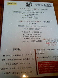 先週末、久々に食べ放題に行ってきました。今回は、県庁付近の「キッチンまどれ」。名前を聞くと何となく“軽食喫茶店”お店を見ると、外からは想像もつかなかったシンプルカワイイーインテリア。中央には大きなテーブルとイス。道路側には4人がけテーブルいくつか。奥には大座敷と、その手前には小さく仕切り座敷も・・・。ところ狭しと調理場の前のカウンターに各種料理が並んでおり、大好きなバイキング(ヴィッフェ)であります。あっちなみに・・・メインがパスタ5種類から選べて、デザート・コーヒー付きしかも今回お得なクーポンを用いて、定価1280円のものを1人1050円にて思いっきり食べたわけです。ちょっとクリームパスタ、コテコテしてたけど・・・なかなか美味しい。某、イタリアンのお店2箇所より、美味しい。1つは同じく“前菜ヴィッフェ”でイロイロ品数はあってもほとんどガーリックオイルの味のみ。とか・・・。もひとつのお店も“有機野菜使用”で人気はあるけど、味が濃いし。ココは品数ちょと少なめだけど、味にバリエがあって◎っした。しっかもイロイロ料理黒板に、ビックリなコメントが・・・「他店もオムライスより絶対美味しい自信がありますっ」みたいなコト書いてあったし。これは次回、オムライスを食べに行きたいと思っている次第です。さ、家族みんな、風邪ひきも終わってきたことだしじゃんじゃん食べに行くわよ~ん♪