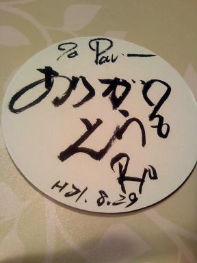 先日、高校の同窓会に行ってきました。最近の生活の疲れが癒されるイイ日でしたえっ?!何に疲れてる??「今日は飲むぞ!」と気合十分に、片道バス代をケチり、「ウコンの力」を買い事前に飲んでいざ!!とガブガブとアルコールを飲んだら・・・やっぱり酔った。すげー酔った。次の日、ゲロルくらい酔った。全然、ウコンパワーは効きませんでした・・・いったいどんだけ飲んだ??でも・・・あたしよりもベロンベロンになっていた「ふっち」ちゃんは・・・無事おうちに帰れたのだろうか。ちょっと心配。バス亭で待ってたけど・・・「そこ反対行きのバス亭ですけどーーー!?」っていうか「もうバスが無い時間ですけどぉーーーーーー!!」って言ってもしばらくソコにいました。けど、ほかしてカザと帰りました生きているだろうか。。。アタシは強く生きよう。このティーチャーに頂いたコースター色紙を日々見て「頑張ろう!」また来年の同窓会まで・・・♪