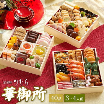 ここのおせち料理、美味しいの★エントリーでポイント10倍★【送料無料】本格京風おせち料理「華御所」 【約七寸、三段重、40品目、3人前~4人前】 2024~2025 京菜味のむら
