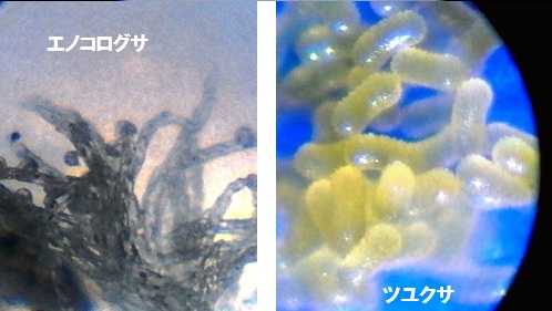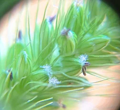 | スギ 」以外にもうひとつ 「 エノコログサ 」という植物に中度のアレルギー反応が あることが分かりました。 ……エノコログサってなに と思ったら「 ねこじゃらし 」のことだそうですビックリ! スギ以上によく見かける雑草ではないですか。 一年中,なんとなく鼻炎なのはこのせいなのでしょうか。 調べてみると,一年中花粉が飛んでいるわけではなく 今ちょうど花が咲いているようだったので 花粉が見えるのかしらと 道端にあるものを摘んで顕微鏡観察してみました。 マスクと手袋着用,顕微鏡を風下になる窓際に置いて, 厳戒態勢 そこまでして,見たい自分って何なんでしょう エノコログサの花穂と種子 ![]() エノコログサは,このしっぽの部分全体を「 花序 」 1つ1つを「 小穂 」といいこの状態が花だそうです。 ![]() ちょっと拡大したところ。かわいいです。 白いモシャモシャしたものが「 柱頭 」で花粉が付くところ 紫の部分は「葯(やく)」で花粉が入っている所だそうです。 〈小穂の先端を拡大〉 ×50半分に割ってみました。 片方に毛が生えており,もう片方に柱頭と葯があります。 <葯を拡大> さらに拡大してみました。 ×200紫色に見えたものは 黒の粒つぶ でした。 これが花粉なのかな???模様なのかな??? これ以上,開けたりすることはできなかったので ハッキリしませんでした。 〈柱頭を拡大〉 ×200一方,同じ同じ倍率で柱頭を見ると「つぶつぶ」が付いており, こっちが花粉のような気がします。 (正解をご存じの方教えてください。) 球の一部が欠けたような,ちょっといびつな形です。 〈他の花粉との比較〉 ![]() この前観察したツユクサと較べると小さいことがよく分かります。 飛びそうです。 試しにプレパラートの上でトントンしたりもしてみましたが 柱頭にくっついているもの以外,花粉の観察はできませんでした。 (健康のためにはこれで良かったのかも) ついでに毛の部分も拡大してみました。 ×100ギザギザとのこぎりの歯 のようになっています。 これを見て思い出した遊びがありました。 ![]() エノコログサの花序の部分を下向きに持って押したり緩めたりすると モフモフと上に向かって動きます。 逆向きに持てば,下に動きます。 大きなものを選んでニギニギすると楽しいです。 こうやって遊んだことがある方,多いのではないでしょうか。 なぜこのような動きをするか,知らなかったのですが 毛にこんな構造が隠れていたんですね。 花粉見たさの観察で,思わぬ収穫でした。 小穂が落ちて毛だけになったものでも遊べるので これからは,花がないものを選んで遊ぼうと思います。 今回使った顕微鏡。お気に入り。 【送料無料】ケンコー・トキナー Kenko Tokina パソコン接続OK 顕微鏡 ドゥネイチャー Do・Nature デジタルマイクロスコープ STV-451M II Kenko 顕微鏡 Do・Nature デジタルマイクロスコープ STV-451MII Amazon(アマゾン) この本は沢山の花粉が載っていてとても面白いのですが エノコログサはなかった……残念! 花粉ハンドブック/日下石碧【1000円以上送料無料】 肉眼でも見えるものには 【送料無料】進化版 スマートフォン用 クリップ式 マイクロスコープ 取付簡単 LEDライト付スマホ顕微鏡 60倍 軽量コンパクト UVライト スマホで手軽にマクロ観察 ハンディなスマホ顕微鏡は,外での観察にも便利。 今回も一部,使っています。 |