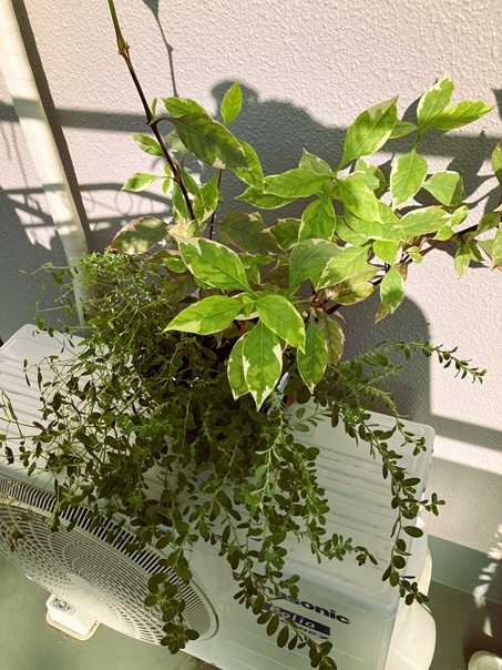 NHKEテレ「趣味の園芸」の「みんなの趣味の園芸」より「晴れ夏に強いPW4品種セット そだレポ投稿モニター」でいただいた,対暑性★5の優れものたち。厳しい試験を通り抜けた国際ブランドPW(PROVEN WINNERS)の4品種(新品種含む)6月末から栽培スタート。スタートのブログはこちらしかし,まさかこれほどの酷暑になるとは……ですが4種類とも元気に夏を超えてくれました(週1でハイポネックスを薄めてあげています。)アルテルナンテラ ピンクシェード紫がかった葉がとても綺麗でした。日を追うごとに背が高くなり,色は薄いグリーンに。茎が柔らかく風で何度か折れましたがそのたびに元気に伸びてきました。朝晩少し涼しくなってきてから本数が増えてきて見栄えするようになりました。紫の葉っぱが楽しみです。水栽培したものもよく育ち,ためしに地植えしましたがうまく育たず枯れてしまいました。涼しい時期なら上手く行くかも?と再挑戦中。ユーフォルビア ピンクフロストかわいいピンクの花の色が白くなり一番暑かった時は葉も落ちて心配しました。お盆過ぎて持ち直し,今は枝がモシャモシャしています。なんだか収集が付かないのでカットしようかと思っています。地植えならこの分岐から根がでてグランドカバーしていくのでしょうが鉢植えなので行き先がなく可哀想な感じです。エボルブルス ブルーラグーン植えてすぐに花が咲きだし,7月中は花が咲き続けました。8月に入って花は咲いていませんが葉は元気です。良い感じで垂れ下がってきたので高めの位置に鉢を置いて,花が楽しめるといいな。スーパートレニア カタリーナ ラムレーズン4つのうちでこれが一番安定していて花も咲き続け,大きくなり続けました。 手間いらず,優秀でビックリしちゃいます。残りの3つは寄せ植えしていますがこんな状態だったのが↓ おや,鉢はいずこに?比べると育ったな~とビックリです。逞しく,3か月を通り抜けてくれました。……ちょっとワイルドに伸びるに任せすぎだったかな?そだレポのモニターは9月中旬で終了ですがこれからの季節の変化も楽しみです。冬も乗り越えてくれるのかな?楽しみに育てたいと思います。 * * * 今回育てている植物 * * *エボルブルスアルテルナンテラ■スーパートレニア