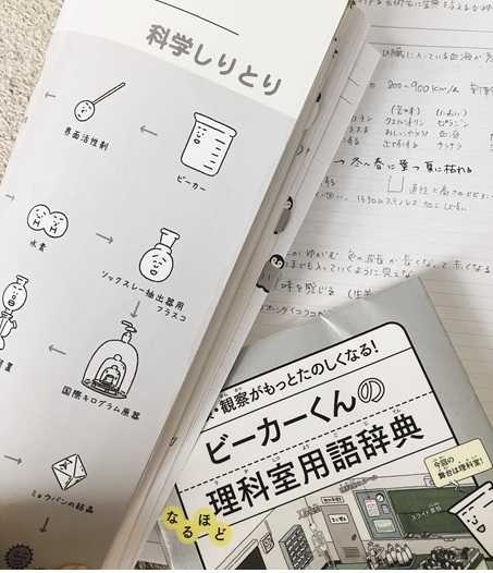大好きなビーカーくんシリーズビーカーくんのなるほど理科室用語辞典 実験・観察がもっとたのしくなる! [ うえたに夫婦 ]実験観察がもっとたのしくなる!ビーカーくんの理科室用語辞典いわゆるお子さん向けの理科用語辞典かと思ったらスタートからいきなり『アイスクリーム作り』。もちろん理科室にある道具や薬品も網羅されているのですがその他にも理科の実験もたくさん収録されています。理科室のイラストがとても素敵で,こんな理科室で授業を受けたかった……ちなみに入口の廊下,準備室のイラストも素晴らしいです。個人的にツボだったのが『蛇口に付けられた細いゴム管』水撥ねを防ぐだけじゃなかったんですね!理科室の木の椅子の一面だけ板が貼ってある理由も初めて知りました。知らないで使っていたものが多すぎて,また「メモ,メモ」しています。ちなみに理科に関するメモ書きにビーカーくんのノートを使っています。いろいろな科学館で売っています。今はA4を使っていますあいうえお分けしているのですが「ぬ」「ね」「の」が空っぽなんです。この本もナ行は少な目でした。ナ行の理科用語少ないんですね。グッときたポイント『取れなくなっちゃった…』『床を直で拭かない』など用語というよりはフレーズ?も収録。思わずクスリと笑っちゃうような内容で理科室で実験するときに押さえておきたいポイントを楽しく教えてくれます。『分子』の次にくるのは……?かなり困った状態です。予想してから読んでほしいです。こんな人におすすめ 理科室に憧れる1年生から理科室が懐かしいオトナまで実験の注意点は入試問題でもよく見かけます。かわいいイラストで理科に苦手意識があっても抵抗なく読めると思います。なんだか版を追うごとに奥が深くなるビーカーくんシリーズ。次の楽しみです。design by sa-ku-ra*