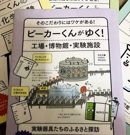 子供達に楽しく理科を教えてくれるビーカーくん4冊目は工場見学,博物館のレポートです。そのこだわりにはワケがある!ビーカーくんがゆく!工場・博物館・実験施設ビーカーくんがゆく! 工場・博物館・実験施設 そのこだわりにはワケがある! 実験器具たちのふるさと探訪 [ うえたに夫婦 ]今回も隅から隅まで情報たっぷり,読み応え十分です。理科室でお馴染みの道具たちを作っている工場に潜入しどんな風に作られていくのか,その秘密を教えてくれます。こんなにも知らなかったとはショック。 ビーカー,温度計,ピンセット,といった道具からリトマス紙,スチールウール のような実験材料pHメーター,上皿天秤,電池,キムワイプちょっとマニアックな桐山漏斗 マイクロピペット まで工場での製造工程が説明されています。子供の科学 2025年 10月号 [雑誌]「子供の科学」の連載が元になっているそうです。ほとんどは一般に公開されていないと思うので実際に見られるのは羨ましい限りです。知っているものだから…作り方も想像できる……なんて思ったら大間違いビーカー,アルコール温度計の製造工程は複雑すぎて正直よく分からないところも……他にも知らなかったこといっぱい。上皿天秤にはバランス調整のヒミツの隠し部屋があるのだそう。開くのかな…開けてみたいボンスターNo.0 (細) スチールウール 業務用…スチールウールは「特殊鋼」なんですね。鉄だけではあんな風に糸みたいにはならないのかぁ~キムワイプとティッシュペーパーは元々の素材が違うのかぁ~ とかもうメモメモ リンクの保存 いっぱい時間をかけて,じっくり読みました。思い込みで間違えていたことも多々ありました。例えばリトマス紙を作る「リトマス苔」が地衣類とは知らず何となく海藻みたいなイメージで紫キャベツのように色のついた苔なのかと思っていました。「リトマス苔は紫です」と言ったことはないと思うけどドヤ顔で説明したこともあると思うとホントに恥ずかしい改めて自分の知識の薄さに反省。このブログ大丈夫かなあ?工場見学以外にも博物館,実験施設,ちょっとマニアックな実験の紹介ページもありました。「スーパーカミオカンデ」は知っているお子さん多い印象ですが,どうして知ってるのかな?「TNT」と共に,よく聞く言葉なように思います。(私の周りのお子さんがマニアックな可能性もありますが……)小学生,中学生はもちろん工場見学が好きな人ものづくりが好きな人理科が好きな人 好きだった人 ビーカー懐かしい♪という人におすすめの一冊です。 desighed by