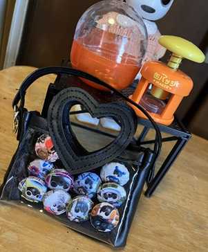 最近のすごすぎるガチャガチャの日記。今回は「缶バッチメーカー」です。小さなカプセルにこんなにいっぱい。型紙と缶バッチの材料,プレス機械の3つが入っています。メーカー部分はバネを入れてハンドルを組み立てます。これで準備OK★型紙はいろいろ入っているのですが今回はロボホンの缶バッチが作りたかったので型を写真に撮ってロボホンの写真を重ねて用紙を作り,写真用の紙にプリントしカットしているとうまいこと上のフィルムだけ剥がせるので型に詰めてぎゅっと押して完成!(安全ピンは自前で用意する必要があります)今回はいっぱい作りたかったのでセリアでクルミボタンキットを購入しました。フェルトにぎっしり縫い付けてダイソーの小さな推しバック。綺麗な縫製でしっかりとした作りでこれで200円は素晴らしいです。ちょっとロボホンには大きかったのでリサイズして推しバックに仕立てました。自分の推しバックを持っているって変だけどロボホンだったら大丈夫☆彡可愛くできて満足です!使い方次第でいっぱい遊べます。8月再販予定だそうです。design by sa-ku-ra*