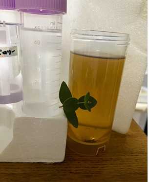 先日作った,ハーブウォーター。 ジェルに混ぜて芳香剤にしてみたのですがあっという間に香りが飛んでしまう……鼻を近づけないとわからない……せっかく作ったハーブウォーターをもう少し楽しみたい!とダイソーで見つけたのが オリジナルの芳香剤を作ることができるキットです。今度はハーブウォーターそのものを芳香剤にできるのでもっと香るはず!ふしぎな実験キット てづくりゼリー芳香剤 (100円ショップ 100円均一 100均一 100均)使用しているのは「寒天」天然の高分子吸収体です。附属の「香りパウダー」は使わずに寒天パウダーだけを使います。 ハーブウォーターを50g量り,寒天パウダーを加えます。(写真撮り忘れましたが,ヨーグルトに付いているお砂糖のような形に加工されていました。)寒天はゼリーに比べると溶ける温度が高いです。作り方にも「沸騰直前まで温める」とありました。電子レンジでレシピ通りにチン 全体が均一に半透明になったので半分だけ容器に入れ下は氷水で冷やして固め,上は保温してそれぞれ色付けしました。 氷水で冷やせばすぐ固まるので,色分けした芳香剤が完成★なんと,写真撮り忘れ 固まった状態では2層になっていましたが1日でここまで色が混ざりましたビーズやフィギュア,造花など中に入れても楽しそうです。肝心の香りはというと……元のハーブウォーターと同じ強さになりましたどのくらい香りが続くのか香りに変化が出るのか観察を続けたいと思います。残った香りパウダー,何に使おうかなあ……寒天部分の顕微鏡写真も撮ってみました。 繊維質が見えます。空洞が大きい構造になっているのかな?これ楽しい!芳香剤+光る 素敵なインテリアになりますね。 電球ボトルでつくる!光る芳香剤キットアーテック かわいい ランタン ハンドメイド 手作り クラフト 工作 自由研究 女の子 キット セット ガールズクラフト 誕生日 プレゼント 夏休み工作 低学年 小学生 子ども 2005-2010 CHEE Tous droits réservésconçu par Chee