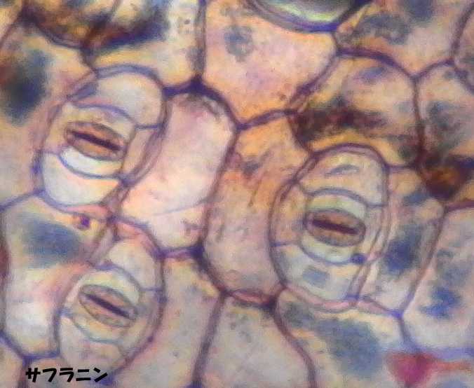 前回の日記「青い花」で色水実験をした「ツユクサ」は「気孔」が観察しやすい植物としても知られています。「気孔」というのは葉などについている空気や水蒸気の蒸散のコントロールをしている部分です。ツユクサの葉は表面,裏面がとても剥がれやすいので簡単に気孔を観察するための顕微鏡サンプルが作れます。コツは少し斜めに引っ張りながら裂くことです。カッターやピンセットはいりません。顕微鏡サンプルは数ミリあればいいのでこれで十分です。外側にあった方を表にしてスライドガラスに乗せ水を付けてカバーグラスをかけて観察します。(×200)唇のように見える所が「孔辺細胞」でここを開け閉めすることにより空気や水蒸気の出入りをコントロールしています。表皮は透明ですがたくさんのエネルギーが必要な孔辺細胞には葉緑体が見えます。裏面と表面の違い(×100)を観察してみました。裏の方が多いです。直射日光が当たる表面は気孔が少なくなっているようです。ただ,サンプルによってはあまり違いを感じないこともあります。ちなみにこの写真は気孔の周りに空気が入り込んでしまっています。この状態だと観察しにくいのでカバーガラスを掛けなおした方がいいです。染色色素があったので染めてみました。これはサフラニンで染めたもの。丸い小さな核が見えます。メチレンブルーも同じように核が青くなるそうです。が,生きている細胞は還元されて染まらないそうなので見えていないという事でしょうか???そしてどの写真にも柱状結晶が見られます。これは「シュウ酸カルシウム」という物質の結晶なんだそうです。シュウ酸カルシウムはとろろ芋のかゆみの原因物質ですがとろろ芋の中のシュウ酸カルシウムは針のような結晶で形が異なります。植物によって同じ物質でも異なる形で貯蔵されるのは不思議です。ちなみにシュウ酸塩はカタバミにも含まれていてこちらはナトリウム塩なので水に溶けるため10円玉磨きができました。さて,次にお花です。青い花びらは大きな2枚だけ,下側にある透明な花びらや虫の気を惹くための黄色いかわいいかたちのおしべ。実に凝った作りで,観察しがいのある花です。ほんとに4,5時間で枯れてしまうには勿体ない花です。一番長いおしべの先にはスマホで普通に撮影するのも可能なほど大きな花粉がくっついています。おしべの中を開けて顕微鏡写真を撮ると縦に仕切られた中に花粉がぎっしり詰まっています。突起のあるジェリービーンズのような花粉です。半透明の黄色で湿り気があり,ペタペタとめしべに付きます。花が枯れるころには花粉もどこかに行ってしまいます。朝が勝負。めしべにカンタンに付けることができます。他にも丸っこい種も可愛いし,一つの入れ物から2つ花が咲くことなども面白い。見どころたっぷりのツユクサの観察,夏休みにおススメです。わが家の顕微鏡はこちら。パソコンにつないでみるタイプ。200倍まで綺麗に見えます。プレパラート,カバーガラスともにプラスチック製で安全。【アウトレット(新古品)[店舗保証]】【即配】Do・Nature (ドゥ・ネイチャー) 顕微鏡 デジタルマイクロスコープ STV-451M II ケンコートキナー KENKO TOKINA 【送料無料】 STV-451MIIAmazon(アマゾン)染色セットは楽天にはこれがありました。私はビクセンのものを使っています。ケニス プレパラート染色液セット YSS10 (1-150-0586) 動物や植物の組織の顕微鏡観察におすすめです。※お取り寄せ商品です。