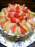 昨日、実家の母の2日早い誕生日のお祝いをするために下の娘は、電車とバスを乗り継ぎ一人旅にでかけた。一週間前に、私と一緒にひとり旅の{予行練習}はしたけれど一人で出かけるのは、まったく初めてなので朝からおじいちゃんが心配して電話をかけてきた。途中で、プレゼントの花を買って行くと言っていたので(その花屋さんも、先週下見済み)実家には早ければ1時過ぎに着くかな…と予想していたらピッタリ、その時間に到着して「無事に着いたよ」と電話がかかってきた。大丈夫だとは思っていたけれど無事に着いて一安心。私も、遅れて車で出かけた。実家に着くと、娘はおじいちゃんに指図(?)しながらケーキのデコレーションをさせている最中だった。そして、おじいちゃんの生クリームの塗り方の上手いこと!娘は、「おじいちゃん、うますぎ~、 パテシィエみたい♪」と言っていた。コテの動かし方を見ていたら、油絵のペイントにちょっと似ている…。それで、上手だったのかもね(笑)ケーキにフルーツをトッピングしたのを見て「横のところに、スライスアーモンドをつけるとカッコイイし美味しいよ」とアドバイスしたら「じゃ、買ってきてくれる?」と言うので母と二人で買い物に…。帰ってきて、アーモンドスライスを軽く焼いて、まわりにトッピング。残っていたフルーツも、もう少し華やかに飾り付けて出来上がり~♪おじいちゃんも感動して(?)デジカメでカシャカシャ撮っていた(^^)そして、私が大根とジャコのカリカリサラダを作っている間にメインの「鶏肉のフルコース」料理(以前作った日の日記です)も完成してみんなで乾杯をした(*^^*)私からはカシミヤの濃い紫色のストールと手袋を娘は一本の青い薔薇をプレゼントした。生花なのにきれいな青いバラ。多分、染めてあるのだろうけれどおばぁちゃんもおじいちゃんも初めて見る青い薔薇にビックリしていた。何よりも、娘が一人で来てくれて手作りの料理でお祝いをしてくれたことが、嬉しかったようで青い薔薇と一緒に幸せを届けて娘の一人旅は大成功に終わりました♪
