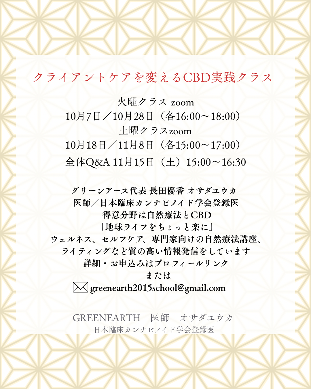 秋スタート【クライアントケアを変えるCBD実践クラス】