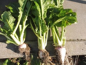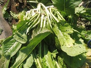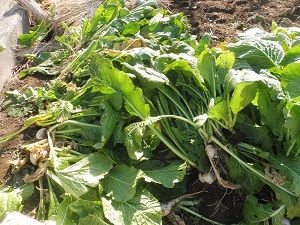 9月に種播き12月霜が降り寒さにより野沢菜に練りと柔らかくなりましたところを収穫します。