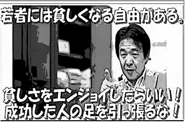 (*′☉ケ☉)ケ 竹中平蔵>> =☞ インカムで年金潰し消費税2倍値上げのゴミ掃除かな ……………………………… (*′☉ケ☉)ケ 竹中平蔵>> 『所得制限付きベーシックインカム』を提案 「国民全員に毎月7万円支給」、生活保護や年金などの廃止 …元総務大臣でパソナグループ会長の竹中平蔵氏がテレビ番組で提案した「所得制限付きのベーシックインカム」が、SNSで大きな話題を集めています。9月24日10時現在、「ベーシックインカム」「竹中平蔵」が共に日本のTwitterトレンドワードランキングにランクイン。Twitterユーザーは、「所得制限付きのベーシックインカム」についてどのように捉えているのでしょうか。「所得制限付きのベーシックインカム」と称し、「国民全員に毎月7万円支給」「所得が一定以上の人は後で返す」「マイナンバーと銀行口座をひも付け所得を把握」といった案を披露していました。竹中氏は以前から「ベーシックインカムを導入することで、生活保護が不要になり、年金も要らなくなる。それらを財源に」といったベーシックインカム構想についての発言を行っており、今回はテレビ番組で自論を展開した形です。ベーシックインカムは、政府が国民に対して最低限の所得を保障する政策で、「最低限の生活」を送るのに必要とされている額の現金を全ての国民に定期的に支給するというもの。ドイツやフィンランドなどでは同様の制度に関する社会実験がすすめられているほか、コロナ禍などの急激な収入減を保障する制度として注目を集めています。政府が給付した1人10万円の「特別定額給付金」も「定期的」ではないものの、一律で給付されるという点ではベーシックインカムに似た政策だと言えます。厚生年金を無くし全員を国民年金にする、そして生活保護も極端に引き下げ、あとは自助で頑張れとする。………………………………(TдT) 巷間の意見>>七万ってどうやって生活していくんだ?(*′☉ケ☉)ケ 韓国麺(50円)・おから(豆腐屋と交渉してただ)・キャベツ(剥かれて捨てられた外皮をスーパーのゴミ箱から失敬する)馬鹿正直に交渉すると断られる。窃盗容疑で逮捕されても自己責任で…。拘留中は衣食住無料の特典あり。もやし(20円特売)自宅でニンジンを植える。コウロギは食える(これマメな。ラーメンに入れると海老のような味だぞ)。路上にドクダミやナズナが生えている。暇なら釣りをしよう。石神井川でも鯉がいるぞ。一食100円で1日2食にすれば楽勝だろ。千葉か埼玉の原野を20万円で買って住所登録し、ホームセンターで8000円のテントを買って自宅にしよう。トイレの心配は不要。近くに水源のある原野を買うのがコツ。煮沸するかキッチンハイターを微量いれれば飲んでも当面の間は健康上問題ない。自然生活に飽きたら8時間1600円のネットカフェで寝泊まりして都会生活を満喫してください。着るものは被災地に行って古着を救援してもらおう。………………………………\(`o'") 巷間の意見>>ケケ中の発言がおまえらの得になるわけないじゃん。10割の医療費が払える者だけが、自民党に投票しなさい。なお、自由診療のみとなります。(*′☉ケ☉)ケ 甘いわ!消費税20%乗せてやる。………………………………ヽ(τωヽ)ノ 巷間の意見>>韓国は月4000円 <ヽΘ文Θ> 文在寅>>韓国、年間4万5000円でベーシックインカムを開始へ …韓国人「餓死するよりマシ」<ノ`糞´>ノ ウリは出したものを食える特技があるからチョッパリより有利ニダ。………………………………(ι`・ω・´)ノ 巷間の意見>>俺いま怪我をして、手術に60万、入院に数十万かかってるんだけど健康保険のおかげで安心して治療できている。って前スレで書いたら、死ねよ穀潰しとかひでーこと言われたんだけどおまえら、自分が怪我したらどうする?セーフティーネット外したら、なにかあったときに死ねよ穀潰しって自分が言われる立場になるぞ?(`∀´) 自民党工作員の書き込み>>書いたのはウリニダ。………………………………(#゚Д゚) 巷間の意見>>おい竹中おまえとりあえず一か月七万円で一年間生活してみろそれから言えアホ(*′☉ケ☉)ケ 菓子折だけで生活できるわ、ボケ!………………………………( ゚д゚)、 巷間の意見>>月7万円のお小遣いが欲しい糞ニートやクズ無職が多いからだろwε(*´・籠・)з 引きこもり>>竹中先生は神様です<ノ`移´>ノ 竹中頼って移民ニダ( `民´) 移民アル( `ベ´) 牛泥棒に追い銭………………………………記事が面白いと思ったら下のリンクをクリックしてくだされ!! →人気blogRanking 作品紹介 内容の詳細はここをクリック