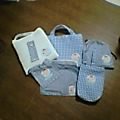 で、出来たorz手作りグッズorzもう無理orzぎぼぢわ°る°い°(チェック攻撃による。ダメージ90くらい)座布団カバー、絵本入れ、着替え入れ、コップ入れランチョンマット3枚、靴入れ、歯ブラシ入れ、タオルの紐付け。*名前をつけてるのと、著作権の関係でワザと遠目です。タオルは、買うと高いので、体操教室等で使っていたタオルに紐付けました。「歯ブラシ入れ」の必要性の理解に苦しみ、最後迄作るのを渋っていました(苦笑)どうせ作らなあかんのに…;後は、制服等に名前を書き込む事。体操服に縫い付ける事等。気が向いたらコップ入れ等の予備を作るつもりだけどどうかわからん!!