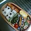 昨日はすっかり写真に撮る事を忘れてたので今日のはUPしてみました。おにぎり入れるともう何にも入んないー!(怒お弁当箱変えようかな。でも妹からの入園プレゼントだしな。優は「ちょっと足りなかった」って言ってた。やっぱ2段弁当!?因みにおにぎりはふりかけ&★海苔。カニカマ&スプラウト(ちびおっさんはコレが好きなのです)のマヨ付き玉子巻き、枝豆、プチトマト、胡瓜とチーズです。本当は胡瓜、チーズに茹で人参を串刺しにしたかったけど入らんかった…。手抜きしまくり。手の込んだのは「お弁当参観」の日まで…(爆多分、もうお弁当UPする事は無いでしょう。「おお!あたし、頑張った!!」って思えるのが出来た日以外は。(苦笑)どうせそのうち、きんぴらやらひじきやら、ますますおっさんくさいモンが入るようになると思うし。