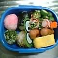 今日は360に入れてみた。むむぅ~。本当は後2品入れるか、ご飯をもう少し多くしたい。やっぱり360も無理か…新しいお弁当箱買うのも勿体無いので、極小タッパーでもつける事にするかな。でも、そうすると色合いのバランスが難しいぞ。*おにぎりは 青海苔、海苔、胡麻、桜でんぶの4色団子状おにぎりで~す。そして、幼稚園児のお弁当に「茹でオクラのおかか和え」(爆)